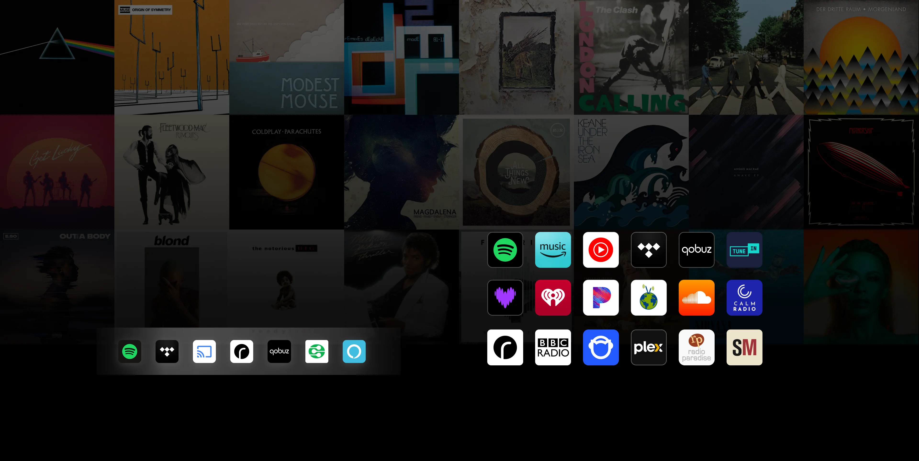 Stream from over 20 services directly in the WiiM Home Appโincluding Spotify, Amazon Music, YouTube Music, Music, TIDAL, Qobuz, Deezer, Napster, Pandora, Plex, SoundCloud, TuneIn, iHeartRadio, and more.